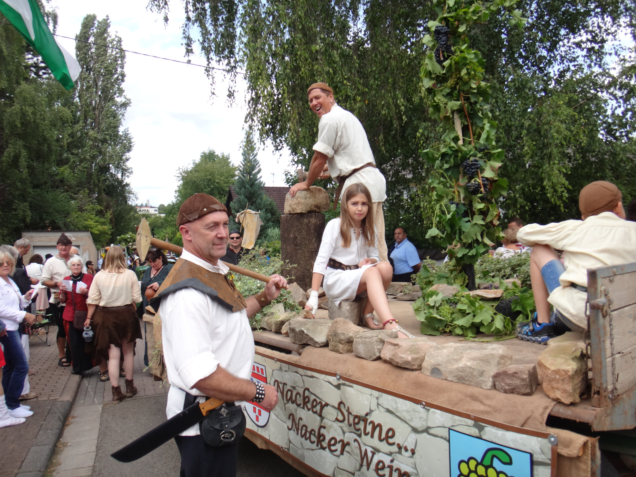 Mit mittelalterlicher Gewandung un dem Motto "Nacker Steine, Nacker Weine" beteiligte sich eine ansehnliche Gruppe am Umzug am Kerbesonntag.