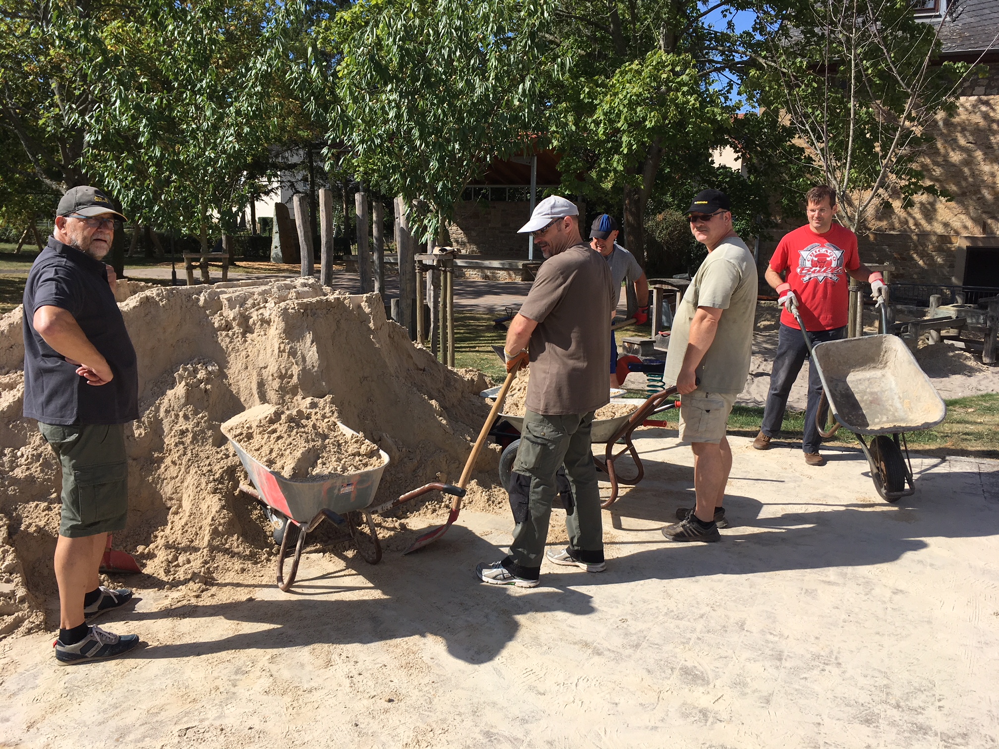 anderen Spielplatz wurde der Sandbereich an dem Vormittag in Handarbeit