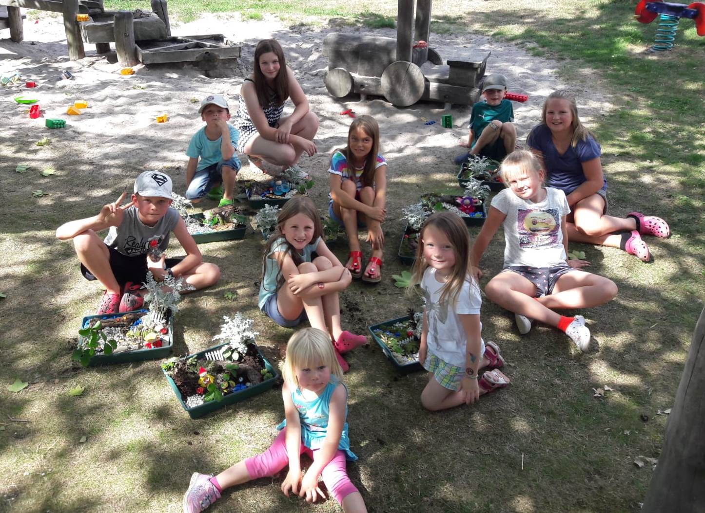 Die Nacker Landfrauen luden die Ferienspielkinder aus Nack dieses Jahr zum Bau von Feen- und Wichtelgärten ein. Die neun bastelbegeisterten Kinder machten sich zuerst daran, eine Fee oder einen Wichtel aus Tontöpfen und Filz herzustellen. Unterstützt durch die Landfrauen Melissa Lahm und Angela Crayen und unter tatkräftiger Mithilfe der anwesenden Mama Jenny Maier stellten die Kinder hübsche Blütenfeen und trollige Wichtel her. Anschließend mussten noch die Gärten für die künftigen zauberhaften Bewohner hergerichtet werden. Mit viel Freude und Eifer machten sich die Jungen und Mädchen daran, ihre Schale mit Blumenerde zu füllen, um sie danach mit den unterschiedlichsten Materialien auszugestalten. Rebwurzeln, Moose und Steingartenpflanzen wurden liebevoll platziert, eine Erdbeerpflanze durfte auch nicht fehlen, denn etwas zum Ernten brauchen die Feen und Wichtel (und ihre Schöpfer) schließlich auch. Dann wurden Bäche und Seen aus blauen Steinen angelegt und einige Schätze wie kleine Fliegenpilze, glitzernde und nachtleuchtende Steine in den Garten integriert. Nachdem sich die Kinder nach der geschafften Arbeit noch etwas gestärkt hatten, konnten sie stolz ihren eigenen Feen- oder Wichtelgarten mit nach Hause nehmen. (Text und Foto Melissa Lahm)