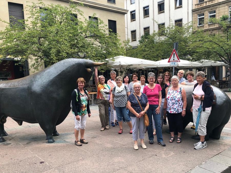 Der Tagesausflug der Nacker Landfrauen führte uns in diesem Jahr nach Frankfurt am Main. Mit dem Zug angereist, wurde direkt die Kleine Markthalle sowie der Frankfurter Wochenmarkt angesteuert. Eine Stadtführung durfte nicht fehlen, genauso das Bestaunen der Wolkenkratzer von unten, wie auch vom Main Tower aus von oben. Der Abschluss fand traditionell in Alt-Sachsenhausen in einem Äppelwoi-Keller statt.
